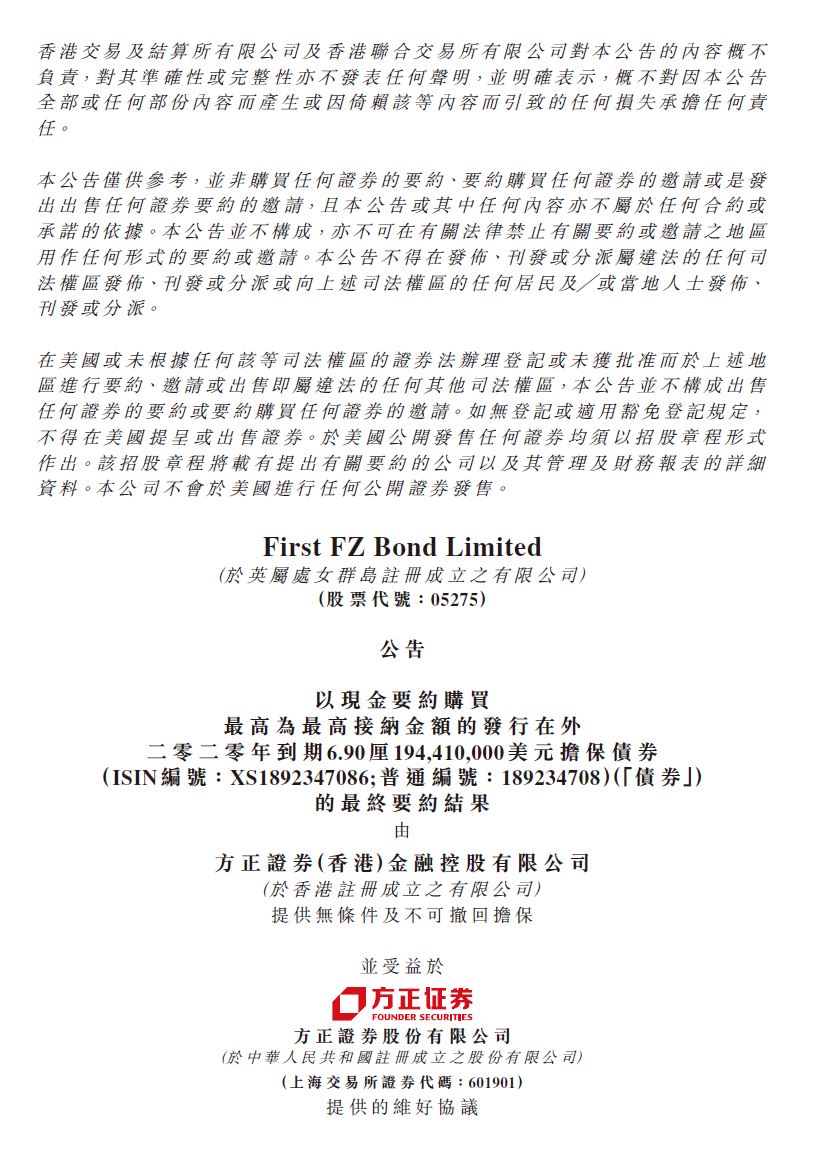 方正證券境外債回購結(jié)果公告
